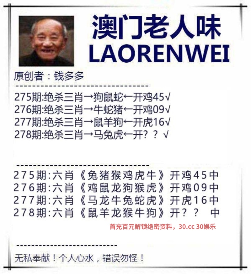 275期:绝杀三肖【羊猪兔】开:鸡45准