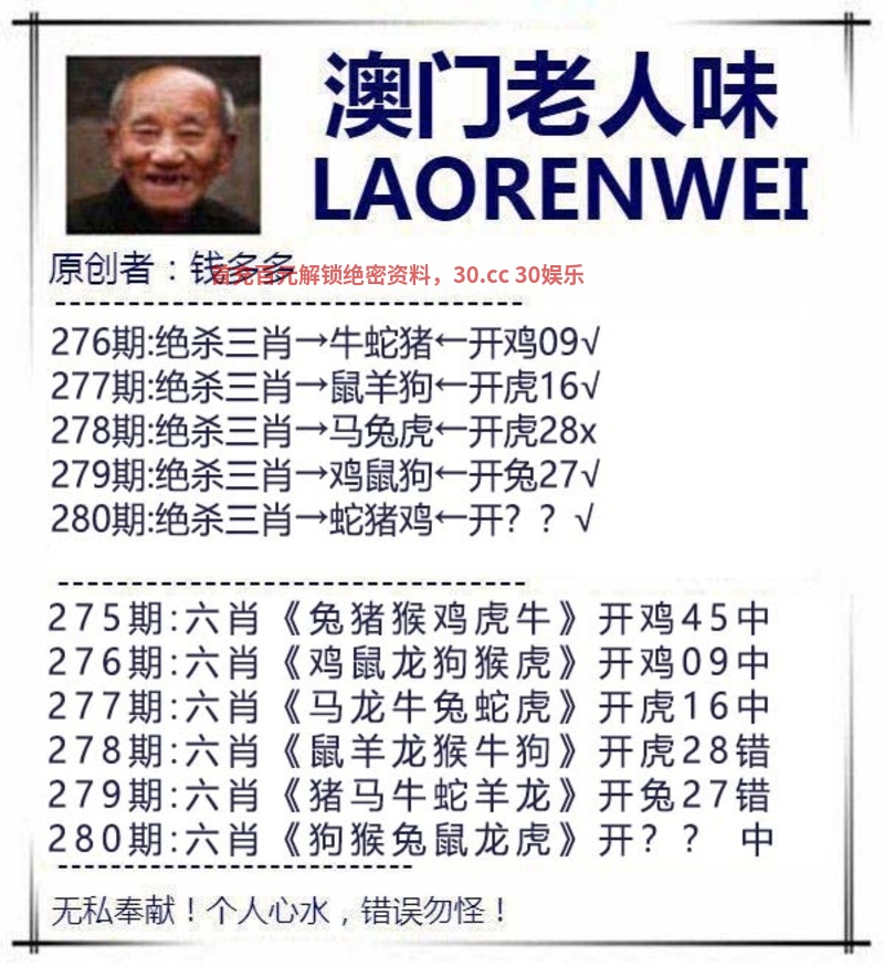 280期:绝杀三肖【鸡猪虎】开:鼠42准